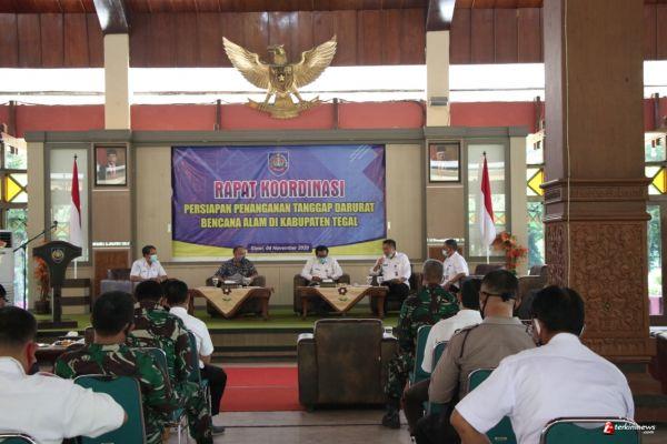 TEGAL - Sekretaris Daerah Kabupaten Tegal Widodo Joko Mulyono memerintahkan para camat beserta unsur Forum Komunikasi Pimpinan Kecamatan (Forkopimcam) menginventarisasi daerah yang rawan bencana di wilayahnya. Hal tersebut disampaikan Joko saat acara Rapat Koordinasi Persiapan Penanganan Tanggap Darurat Bencana Alam di Kabupaten Tegal di Pendopo Amangkurat Pemkab Tegal pada Rabu (04/11/2020) pagi.