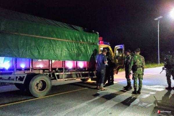 Guna mencegah terjadinya kegiatan ilegal di wilayah perbatasan antara Indonesia dan Malaysia, Personel Pos Seriang Satgas Pamtas RI-MLY Yonif 407/PK menggelar sweeping malam hari di Jalan Raya Desa Seriang, Kecamatan Badau, Kabupaten Kapuas Hulu.