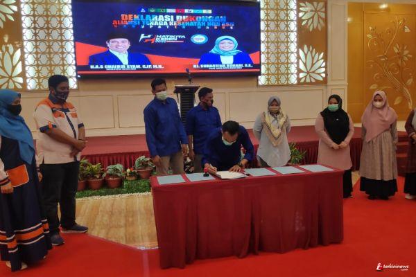 MAROS - Aliansi Tenaga Kesehatan non ASN (Atenna) Maros, menggelar deklarasi dukungan ke Pasangan Calon (Paslon) Bupati dan Wakil Bupati nomor urut 2, Chaidir Syam dan Suhartina Bohari. Acara itu digelar di Hall Grand Town Maros, Selasa (24/11/2020).