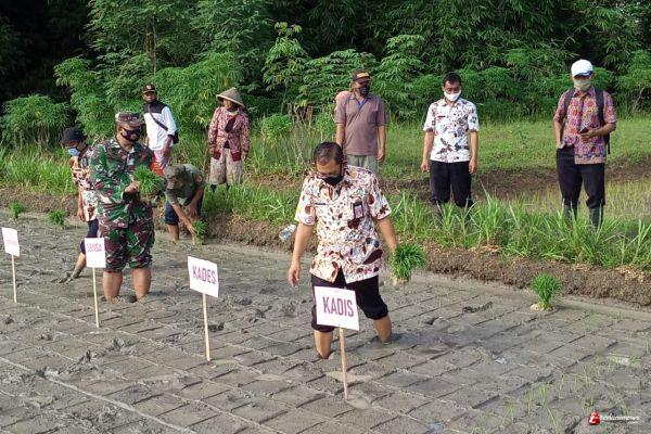 Babinsa Serka Suwarno Dampingi Kepala Dinas Pertanian Cilacap Tanam Padi di Desa Bantarsari