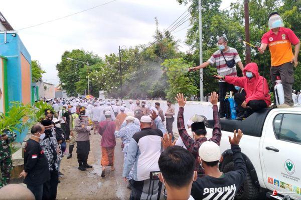Wakil Wali Kota, Forkopimda bersama Dinas Kesehatan Kota Tegal dan BPBD Kota Tegal juga melakukan penyemprotan disinfektan dan pembagian masker dan sosialisasi protokol kesehatan kepada para pentakziyah di sekitar lokasi makam.