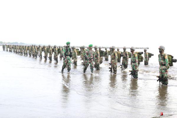 Cilacap-Komandan Kodim (Dandim) 0703 Cilacap Letkol Inf Wahyo Yuniartoto, S.E., M.Tr (Han) menghadiri Upacara Pembaretan Korps Infanteri Siswa Dikcabpaif Taruna Akmil Tingkat IV Tahun 2020, bertempat di Area 70 Pantai Teluk Penyu Cilacap, Kabupaten Cilacap, Jawa Tengah, Sabtu (5/12).