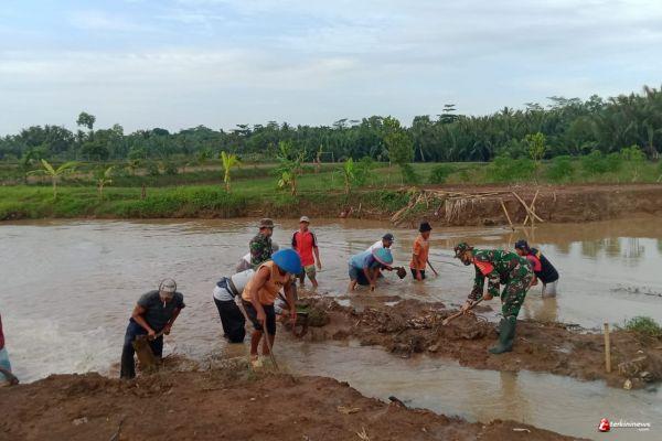 Cilacap - Antisipasi terjadinya banjir pada saat hujan kembali turun, Babinsa Koramil 05/Nusawungu Serka Purnomo bersama warga masyarakat melaksanakan kerja bakti bersihkan lumpur dan sampah di Sungai Mbodo Desa Kedungbenda Kecamatan Nusawungu, Minggu (6/12/20).