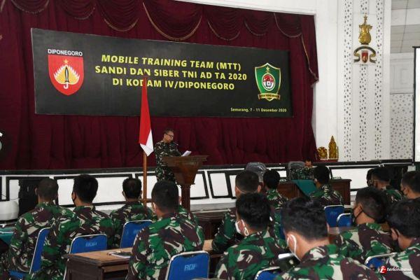 Menindaklanjuti pembentukan Satuan Pusat Sandi dan Siber TNI Angkatan Darat (Pussansiad), Kodam IV/Diponegoro menggelar Mobile Training Team (MTT) Sandi dan Siber TNI AD Tersebar di Balai Diponegoro, Jl. Perintis Kemerdekaan, Watugong. Senin (7/12/2020).