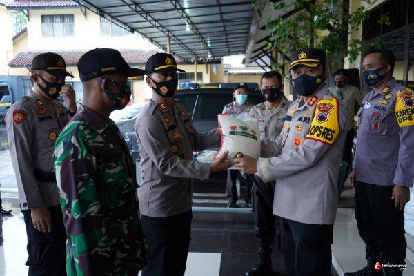 Kapolres Batang AKBP Edwin Louis Sengka menyerahkan bantuan beras 11 ton beras dari Mabes Polri kepada Polsek jajaran untuk disalurkan kepada masyarakat terdampak Covid-19 di Lobi Mapolres Batang, Senin (7/12/2020).