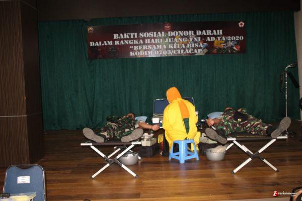 Cilacap - Dalam rangka menyambut Hari Juang TNI AD Tahun 2020, Kodim 0703/Cilacap menggelar kegiatan donor darah bertempat di Aula Satya Kartika Kodim 0703/Cilacap, Jln. Jenderal Sudirman No. D-1 Cilacap, Kamis (10/12).