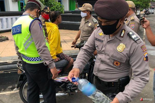 Operasi Yustisi yang digelar di jalan Diponegoro alun-alun Batang, personel gabungan dari Kepolisian Resor (Polres) Batang dan Satuan Polisi Pamong Praja kabupaten Batang kembali mendapati seorang pengendara sepeda motor yang membawa minuman keras yang dimasukan dalam botol bekas air mineral.