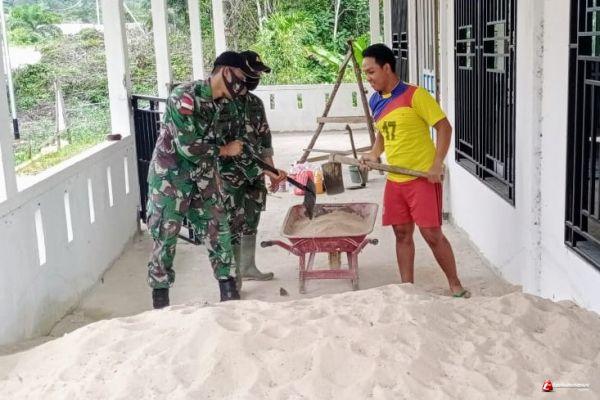 Lebih lanjut disampaikannya, agar memiliki tampilan yang indah dan nyaman sehingga dapat mendukung aktivitas di Surau itu, 5 personel Satgas dipimpin Danpos Merakai Panjang Serka Widodo bersama warga melaksanakan perbaikan berupa pemasangan keramik tempat imam.
