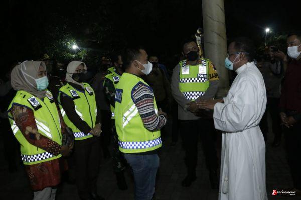 Bupati bersama rombongan juga melakukan kunjungan ke Gereja Kristen Jawa dan Pos Pengamanan Alun-alun.