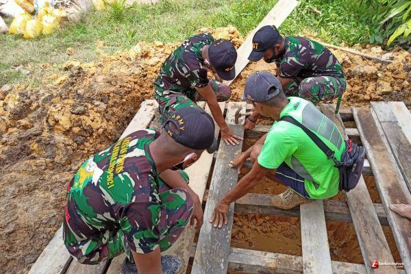 Wujudkan pola hidup sehat masyarakat perbatasan, anggota Pos Kampung Jasa Satgas Pamtas RI-MLY Yonif 407/PK melaksanakan Karya bakti pembuatan dan pengecoran jamban dirumah Bapak Abun di Dusun Wakampuh, Desa Jasa, Kecamatan Ketungau Hulu, Kabupaten Sintang, Kalbar. Kamis (24/12/20)