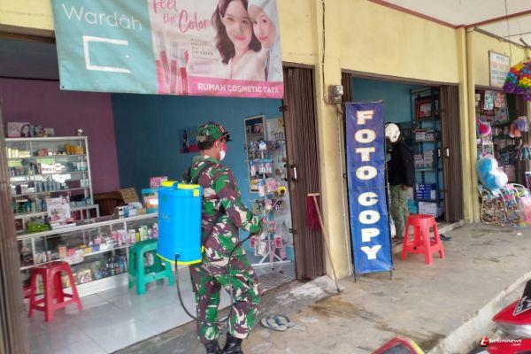 Cilacap - Upaya memutus mata rantai penyebaran Covid-19 dilakukan Babinsa Koramil 07/Maos, Kodim 0703 Cilacap, Serka Slamet bersama Petugas Suku Dinas Pasar Maos dan para warga Pasar Pahing dengan melaksanakan menyemprotkan cairan disinfektan di lingkungan Pasar Pahing, Kecamatan Maos, Kabupaten Cilacap, Jawa Tengah, Senin (28/12/2020).