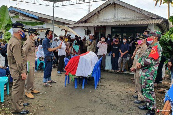Cilacap - Wujud empati dan penghormatan terhadap Almarhum Mad Soelekat, anggota Veteran Pejuang Republik Indonesia, Bati Tuud Koramil 18/Cilacap Utara Pelda Suranto hadiri upacara persemayaman di rumah duka, Jalan Kandri RT 02 RW 14, Kelurahan Gumilir, dan upacara pemakaman di TPU Cacaban, Jalan Klepu, Kelurahan Tritihkulon, Cilacap Utara, Senin (28/12/20).