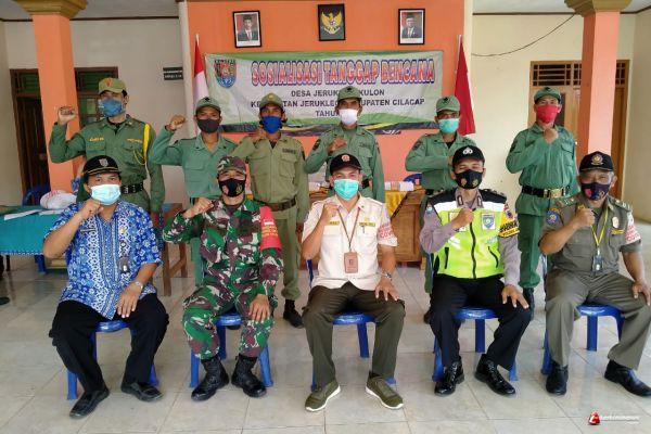 Cilacap - Tingkatkan peran Linmas (Pelindung Masyarakat) di wilayahnya, Pemerintah Kecamatan Jeruklegi menggandeng Aparat TNI Koramil 02 dan Polsek Jeruklegi guna memberikan pelatihan Tanggap Bencana bagi Linmas Desa Jeruklegi Kulon yang digelar di Balai Desa Jeruklegi Kulon Kecamatan Jeruklegi, Selasa (29/12/20).
