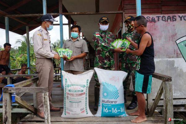 Dalam rangka meningkatkan perekonomian masyarakat khususnya para petani didaerah perbatasan, Satgas Pamtas RI-MLY Yonif 407/Padmakusuma Pos Kotis pimpinan Lettu Inf Reiky Martin bersama dengan petugas Karantina Pertanian Wilker Badau, berikan bibit tanaman serta pupuk kepada masyarakat Dusun Klawik, Desa Mensiau, Kecamatan Batang Lupar, Kabupaten Kapuas Hulu. Rabu (30/12/20).