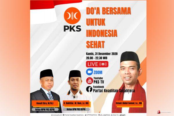 BATAM - Ketua DPW PKS Kepri H. Bakhtiar M Rum, Lc, MA mengajak masyarakat Kepri untuk mengisi malam pergantian tahun dengan refleksi dan doa bersama untuk Indonesia sehat bersama Ustadz Abdul Somad pada malam ini Kamis (31/12/2020) pukul 20.00 WIB hingga selesai.
