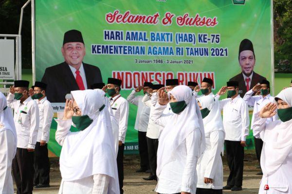 Hal tersebut di sampaikan Kepala Kantor Kementerian Agama Kota Tegal, Akhmad Farkhan, sesaat setelah mengikuti Upacara Hari Amal Bhakti ke-75, Kementerian Agama di Halaman Kantor Kementerian Agama Kota Tegal, Selasa (5/1).