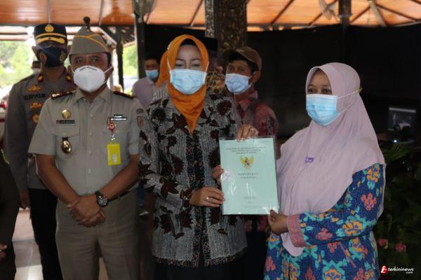 Demikian disampaikan Bupati Brebes Hj Idza Priyanti SE MH usai mengikuti penyerahan Sertipikat Tanah Untuk Rakyat di Istana Negara yang disaksikan virtual dari Pendopo Bupati Brebes, Selasa (5/1).