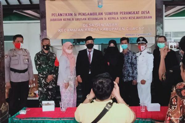 Cilacap - Danramil 03 Kroya Kapten Inf Tugirun menghadiri pelantikan dan pengambilan Sumpah Perangkat Desa jabatan Kepala Urusan (Kaur) Keuangan dan Kepala Seksi (Kasi) Kesejahteraan Desa Gentasari oleh Pemerintah Kecamatan (Pemcam) Kroya dalam hal ini Camat Kroya bertempat di Pendopo Balai Desa Gentasari, Kecamatan Kroya, Kabupaten Cilacap, Jawa Tengah, Jumat (8/1).