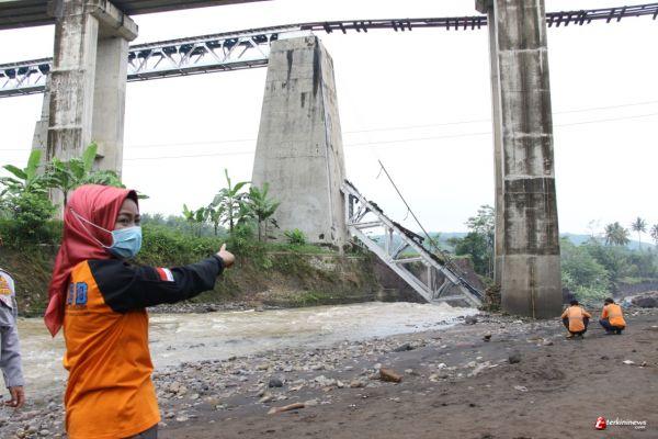 "Saya menerima laporan warga tadi malam, akibat banjir bandang salah satu tiang penahan rel kereta api tergerus air sehingga jembatannya ikut roboh," ucapnya.