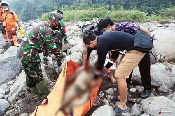 Setelah dilakukan pencarian bersama tim gabungan dari lokasi penemuan potongan kaki, akhirnya pada pukul 13.00 WIB, ditemukanlah jasadnya yang berjarak 100 meter ke arah hilir sungai.