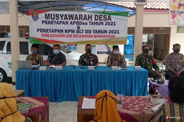 Cilacap - Babinsa Danasri Lor Serda Wiko Andriyanto menghadiri kegiatan Musyawarah Desa (Musdes) Penetapan APBDes 2021 bertempat di Balai Desa Danasri Lor, Kecamatan Nusawungu, Kabupaten Cilacap, Jawa Tengah, Kamis (14/01/2021).
