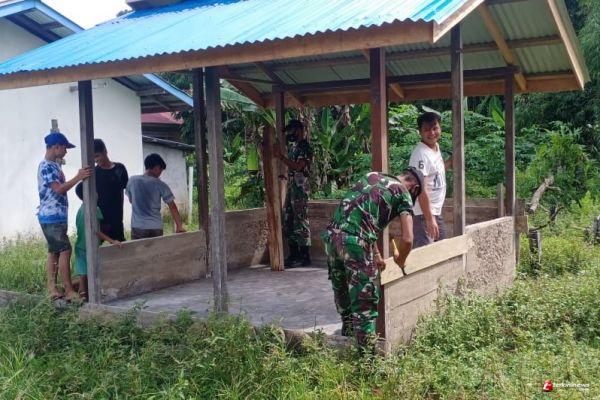 Aktifkan Keamanan Desa Dimalam Hari, Satgas Pamtas Yonif 407/PK Bersama Warga Bangun Pos Kamling