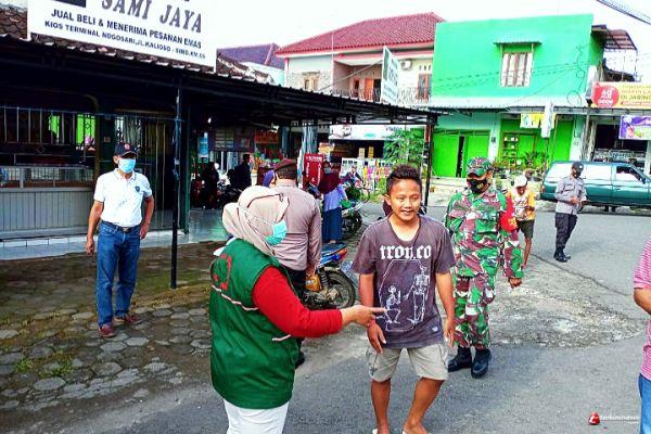 Anggota Koramil 13/Nogosari Kodim 0724/Boyolali yang dipimpin oleh Pelda Suyatno Bersama anggota Polsek Nogosari dan anggota Puskesmas serta anggota Satpol PP Nogosari menggelar Operasi Yustisi di Perempatan Pasar Nogosari, Kabuaten Boyolali. Sabtu (23/01).