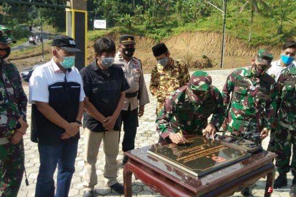 BANYUMAS– Pangdam IV/Diponegoro Mayjend TNI Bhakti Agus Fadjari menandatangani prasasti hasil pembangunan Karya Bakti Serbuan Teritorial Korem 071/Wijayakusuma, Selasa (26/01/2021) di Sentra Perekonomian Masyarakat Desa Darmakradenan, Kecamatan Ajibarang, Kabupaten Banyumas.