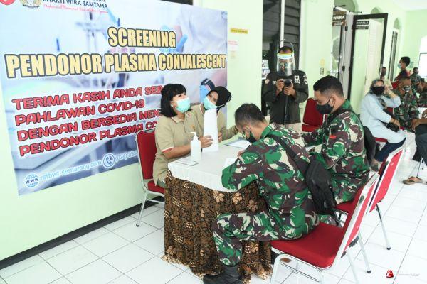 SEMARANG- Sejumlah Prajurit Kodam IV/Diponegoro yang telah dinyatakan sembuh dari Covid-19 mengikuti screening untuk mendonorkan plasma darahnya di Rumah Sakit Tk III Bhakti Wira Tamtama Semarang, Jl. DR. Sutomo No.17, Kota Semarang. Jum’at (29/01/2021)