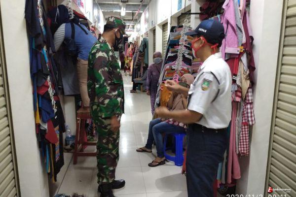SURAKARTA - Babinsa Kelurahan Gajahan Koramil 05/Pasar Kliwon Kodim 0735/Surakarta Sertu Dwi Santoso bersinergi dengan Scurity Pasar selalu melakukan upaya dalam mencegah penyebaran Covid 19 di wilayah binaannya tempat kerumunan di Pasar Klewer Kelurahan Gajahan Kecamatan Pasar Kliwon, Sabtu (30/1/2021) Pukul 10:00 wib s.d. selesai.