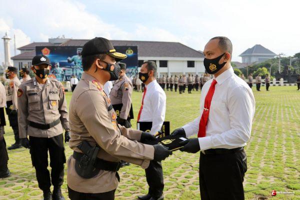 SEMARANG - Kapolda Jateng Irjen Pol Ahmad Luthfi, S.H., S.St., M.K., pimpin Apel Pagi dan Penyematan Pin Emas Kapolri serta Penyerahan Penghargaan kepada 97 (sembilan puluh tujuh) anggota Polda Jateng, Senin (01/2/2021) mulai pukul 07.00 s.d 07.45 WIB bertempat di lapangan Apel Mapolda Jateng.