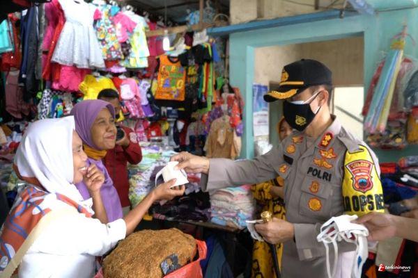 Kapolres Brebes Bagikan Masker Gratis di Pasar Tradisional