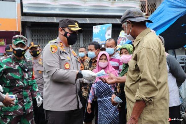 Kapolres Kendal dan Forkompimda Bagi-Bagi Masker di Pasar Weleri