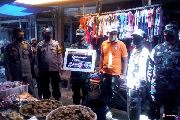 Cilacap - Tugas dalam menjalankan intruksi Pimpinan Jajaran Koramil 10/ Gandrungmangu Kodim 0703/Cilacap bersama Polsek Gandrungmangu, Pol PP dan Pemdes Cinangsi Kecamatan Gandrungmangu, turun ke Pasar Cinangsi memberikan "Himbauan" kepada pedagang dan pengunjung pasar untuk mematuhi Protokol Kesehatan, Jumat (5/2/2021)