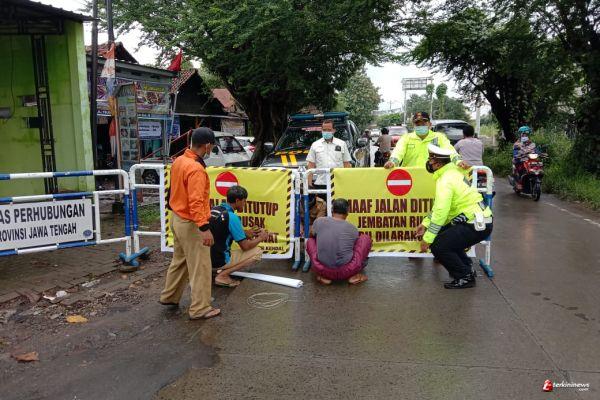 Jalan Amblas, Kapolsek Weleri Polres Kendal, Dishub dan Dinas PU Laksanakan Pengalihan Arus Lalu Lintas