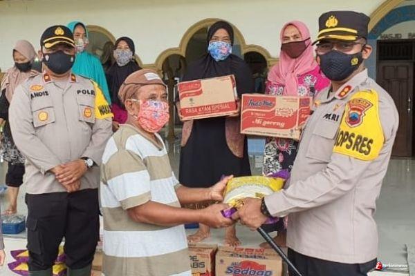 Penyerahan bantuan sosial tersebut diserahkan langsung oleh Kapolres Pekalongan AKBP Darno, S.H., S.I.K., kepada warga korban banjir yang berada di Posko Pengungsian Banjir di Kelurahan Bener Kecamatan Wiradesa Kabupaten Pekalongan, Minggu (7/2/2021).