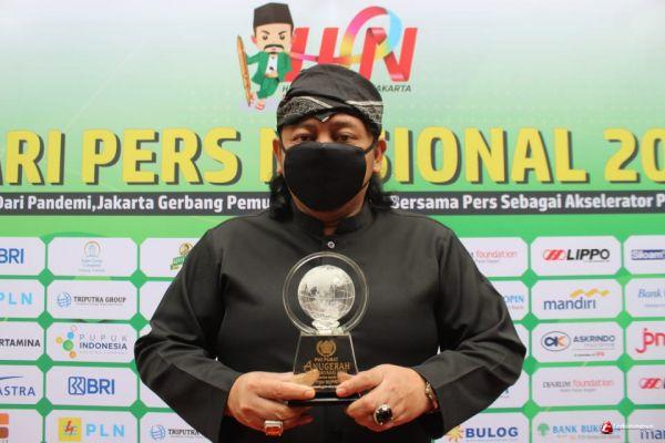 JAKARTA - Wali Kota Tegal H. Dedy Yon Supriyono menerima penghargaan Anugerah Kebudayaan Persatuan Wartawan Indonesia (PWI) Pusat Tahun 2021. Penghargaan tersebut diterima Dedy Yon pada Puncak Peringatan Hari Pers Nasional 2021, Selasa (9/2) di Candi Bentar Hall, Putri Duyung Cotage, Ancol Jakarta.