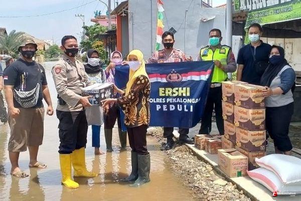 Peduli Korban Banjir, Ershi Polres Pekalongan Beri Bantuan Sembako
