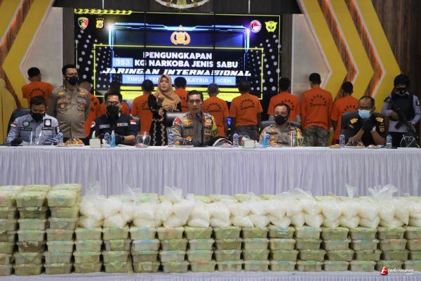 Kapolda Aceh dalam konferensi pers tersebut mengungkapkan, di satu sisi ini merupakan suatu keberhasilan polri dalam memberantas narkotika, namun di sisi lain Kapolda Aceh sangat prihatin melihat masih ditemukannya narkotika jenis sabu seberat 353 Kg di Aceh.