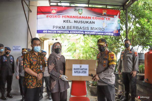 Tak hanya mengecek, Kapolda Jateng juga memberikan Masker untuk Posko PPKM Mikro yang ditujukan untuk masyakarat sekitar.