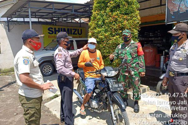 Cilacap - Babinsa Koramil 18 Cilacap Utara, Sertu Yahya Muis bersama anggota Polsek dan Trantib Kecamatan Cilacap Utara melakukan patroli dan monitoring pelaksanaan Instruksi Bupati Cilacap Nomor 2 Tahun 2021 tentang Pemberlakuan Pembatasan Kegiatan Masyarakat (PPKM) untuk pengendalian penyebaran Covid-19 di wilayah Kabupaten Cilacap. Sabtu (13/02/2021)