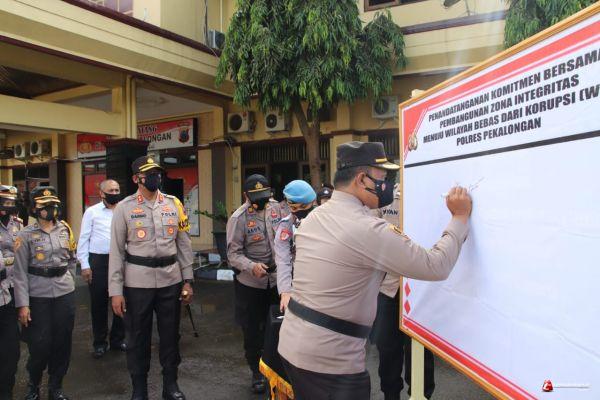PEKALONGAN- Polres Pekalongan pagi tadi menggelar apel Deklarasi dan penandatanganan pencanangan Zona Integritas (ZI) dalam rangka tahapan untuk menuju Wilayah Bebas Dari Korupsi (WBK) di wilayah hukum Polres Pekalongan, Senin (22/2/2021).