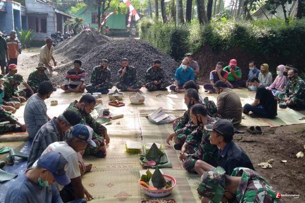 SEMARANG- Perwira Seksi Teritorial Kodim 0714/Salatiga Kapten Inf Sofyan Amiruddin dan Danramil 07/Susukan Kapten Kav Sudarto bersama anggota dan Kepala Desa Ketapang bersama perangkatnya serta warga melaksanakan selamatan dalam rangka menghadapi Pra Tentara Manunggal Membangun Desa (TMMD) Reguler ke 110 Kodim 0714/Salatiga TA 2021 di Desa Ketapang kecamatan Susukan Kabupaten Semarang, kemarin Minggu (21/02/2021).