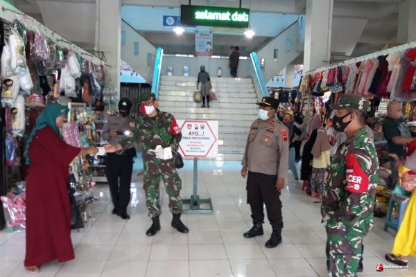 di sejumlah pasar tradisional. Petugas dari Koramil Jajaran Kodim 0736/Batang menyisir beberapa ruang publik, salah satunya Pasar Batang, Jawa Tengah, Selasa (23/2/21) Pagi.