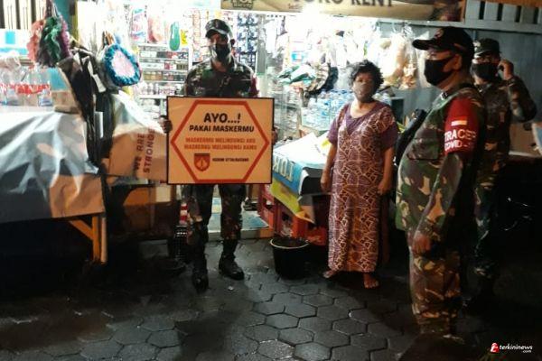 BATANG- Upaya dalam penekanan pengendalian penularan Covid- 19, Koramil 10/Batang Kota terus melaksanakan kegiatan operasi massa PPKM, kali ini menggelar operasi di Jalan Dr. Sutomo, Kecamatan Batang, Kabupaten Batang, Selasa (23/2/21) malam.