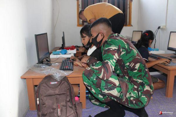 “Pratu Jeflin dan Prada La Ode Saman membantu para guru mengenalkan materi komputer kepada murid-murid SD 25 Perimpah,” ucap Letkol Inf Catur Irawan.