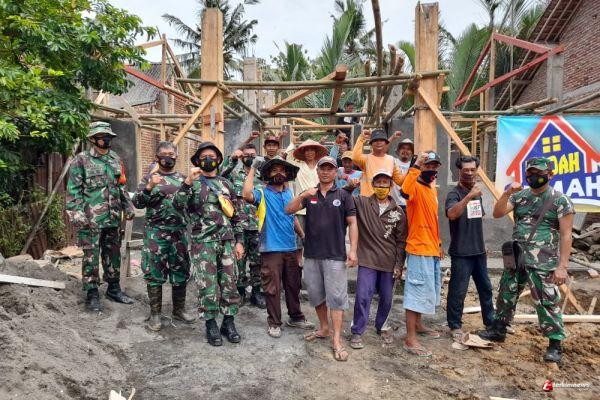 Cilacap - Babinsa Sikampuh Koramil 03/Kroya Peltu Eko Daryanto bersama 6 orang anggota, dan warga binaannya, melaksanakan kegiatan karya bakti bedah rumah milik Tayem, warga RT 39 RW 4 Dusun Gumarang, Desa Sikampuh, Kecamatan Kroya, Senin (1/3/21).