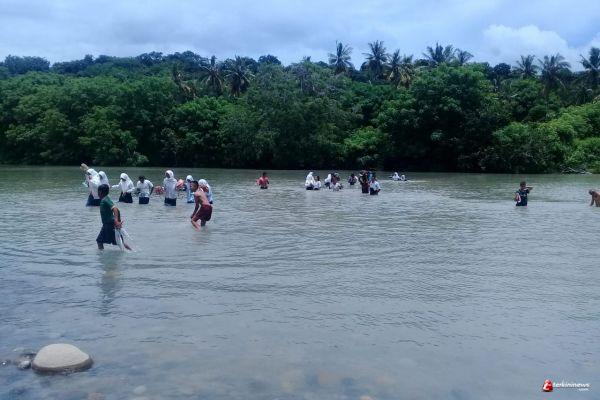 LEMBOR SELATAN - Ketiadaan sarana jembatan menyebabkan sebagian warga di Nisar, Desa Nanga Bere Kec Lembor selatan terpaksa menyeberangi aliran sungai yang deras yang juga dipengaruhi pasang surut air laut yaitu Sungai Wae Mese. Padahal, jika dilihat langkah tersebut dinilai cukup membahayakan keselamatan warga itu sendiri.
