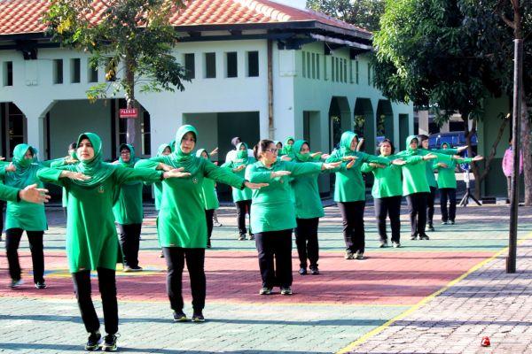 Jalin Kebersamaan, Persit KCK Cab XXXIV Kodim 0734/Kota Yogyakarta Gelar Olah Raga Bersama Ketua Persit KCK Koorcab Rem 072 PD IV/ Diponegoro