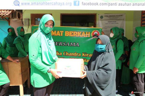 Selain itu, Persit KCK XVIII Dim 0703 Cilacap juga menyambangi Yayasan Panti Asuhan LKSA Amanah "Dewi Mashitoh Cilacap" yang diterima langsung oleh pengurus Yayasan Umi bintang.